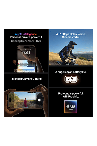 | Camera Features: | 5x optical zoom in, 2x optical zoom out; 10x optical zoom range, Digital zoom up to 25x, Camera Control, Customisable default lens (Fusion), Sapphire crystal lens cover, Adaptive True Tone flash, Photonic Engine, Deep Fusion, Smart HDR 5, Next-generation portraits with Focus and Depth Control, Portrait Lighting with six effects, Night mode, Night mode portraits enabled by LiDAR scanner, Panorama (up to 63MP), Latest-generation Photographic Styles, Spatial photos, 48MP macro photography, Apple ProRAW, Wide colour capture for photos and Live Photos, Lens correction (Ultra Wide), Advanced red-eye correction, Auto image stabilisation, Burst mode, Photo geotagging |